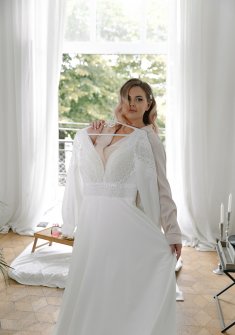 Отлично подойдёт под стиль рустик и бохо. Скрывает недостатки фигуры. В подарок отдам ручной работы веточку для прически невесты.