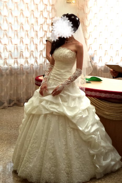 Продается свадебное платье "Арлет"! Покупали в Краснодаре в салоне" Ирина Люкс ". Одевалось один раз. Цвет – айвори. Размер 42-44.Так как на шнуровке,может подойти и на другой размер ). Юбка состоит из двух частей, верхний слой юбки шёлк, присобран хаотичными подхватами, приоткрывает нижний слой юбки, который украшен хрусталиками и пайетками. Есть небольшой шлейф. В комплекте идут кольца под юбку, перчатки, и бижутерия (если понравится). Покупали за 34 500. Звоните! Примеряйте! Покупайте!