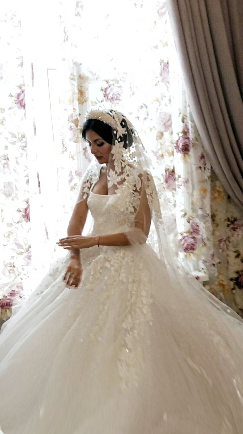 Платье в отличном состоянии, прошло химчистку, сшито на заказ от модного дизайнера Грача Устян, кружева Elie Saab, шёлковый тюль с жемчугом, отрываю от сердца практически задаром для него, звоните или пишите. Доставка бесплатно.