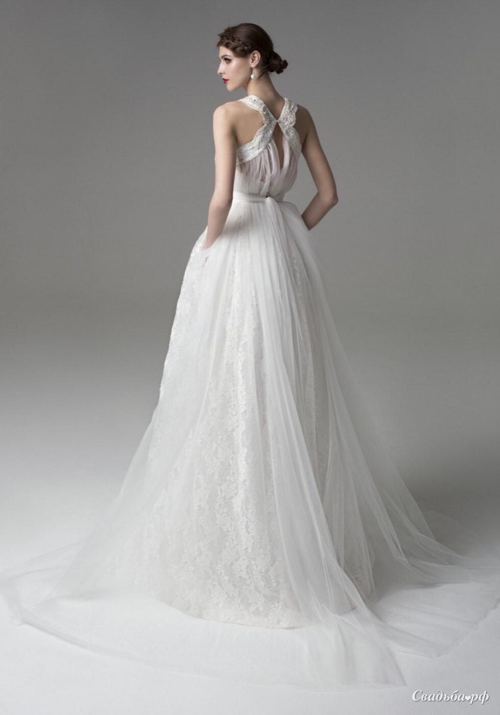 | Ткань: | кружево шантильи и накидка из шелкового фатина |