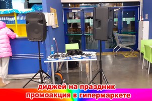 Оборудование: Аудиоколонка 1400 ватт, два радио-микрофона, ноутбук, микшерный пульт, видеопроектор, дым-машина и генератор мыльных пузырей для спецэффектов, аппарат сахарной ваты.