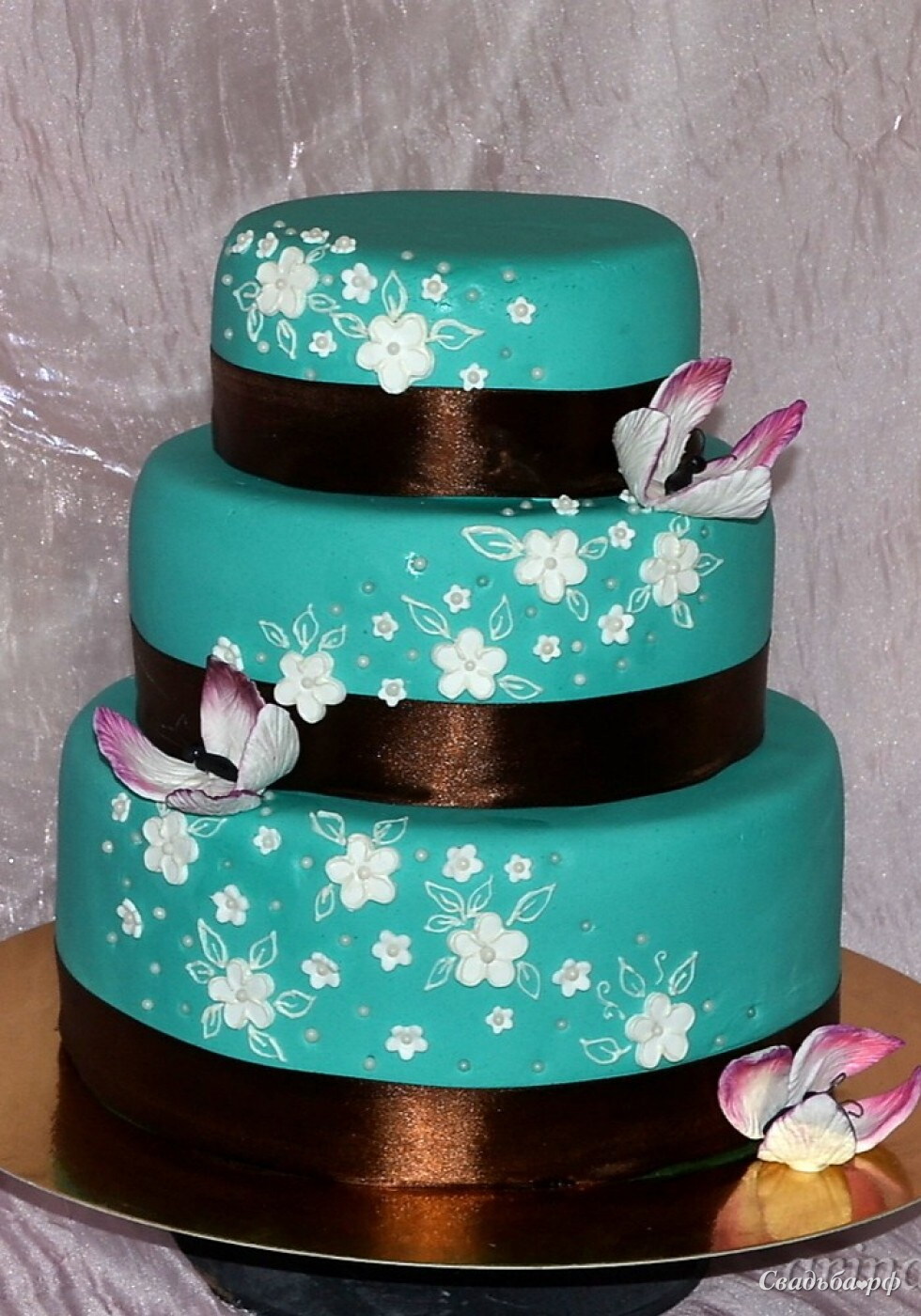 Торт на свадьбу «Бирюзовый с бабочками» (М97293)